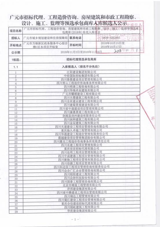 廣元房建市政入庫評(píng)審結(jié)果公示